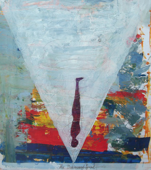 Downward Spirale, 2025, Öl auf Papier, 43,5 x 49 cm