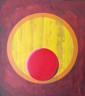 Bei der Bildserie geht es mir um das farbliche Spannungsfeld zwischen runden Formen und einem rechteckigen Farbträger und um das Ausloten von Tiefe. Ich mag runde Formen und Kreise.